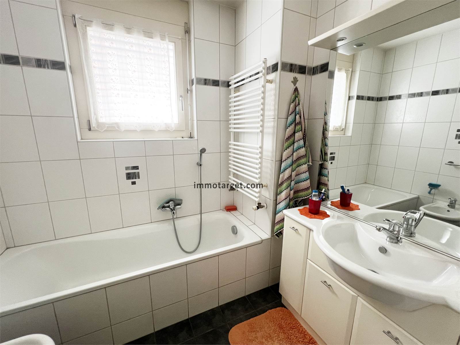 Die Immobilie befindet sich in einem sehr guten Zustand und verfügt über einen Keller und einen weiteren Abstellraum im Untergeschoss, wo sich auch die Garage befindet, in der der Wohnung zwei überdachte Parkplätze zu einem Aufpreis von jeweils CHF 30'000.- zugewiesen sind.